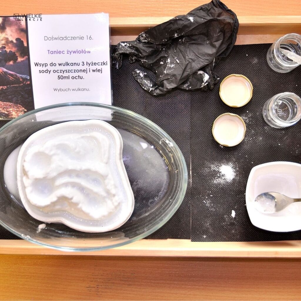Wulkan – ulubiony eksperyment dzieci, pokazujący siłę ciśnienia i ruch magmy.