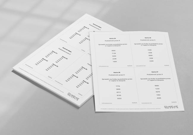 - na każdej stronie znajdują się 4 karty z zadaniami,