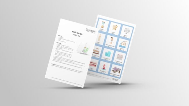 Kontynuacją jest praca z Białą wstęgą, którą samodzielnie przygotujesz i otrzymasz do niej karty z wynalazkami, aby dzieci mogły od razu z nią pracować. Jej rozmiar robi wrażenie, a dzieci chętnie po nią sięgają.