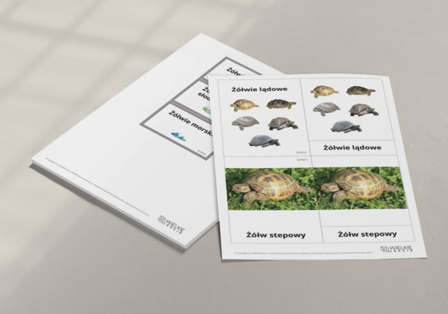 Żółwie wodne i lądowe – Karty trójdzielne Montessori
